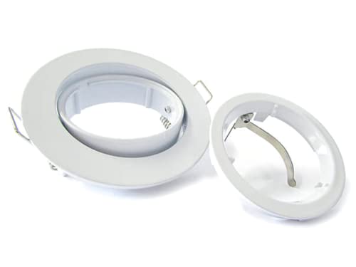 2 Pezzi Porta Faretto da Incasso, Portafaretto Orientabile,Modello Con Ghiera Svitabile, Foro Da 80mm a 90mm, Per Lampade Led GU10 e MR16 (Rotondo, Bianco)
