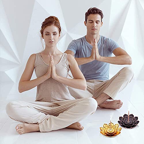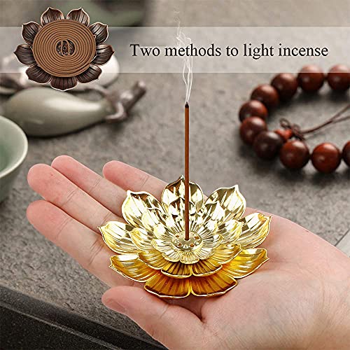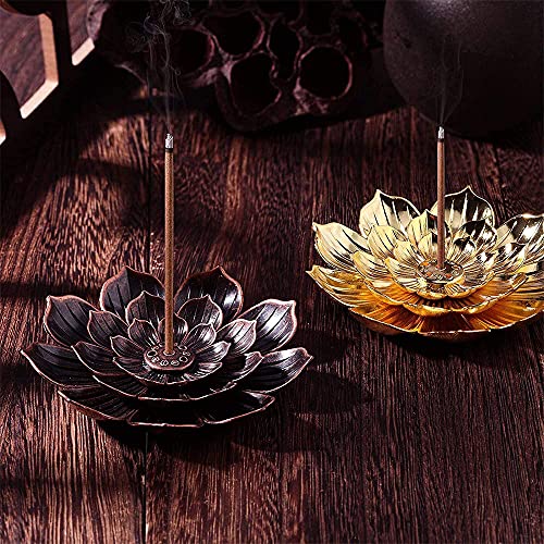 2 Pezzi Porta Incenso Loto, Supporto Bastoncini di Incenso, Porta Incenso Tibetano, Lega di Zinco Brucia incenso di Loto con Raccoglicenere per Soggiorno, Camera, Bagno (Bronzo, Oro)