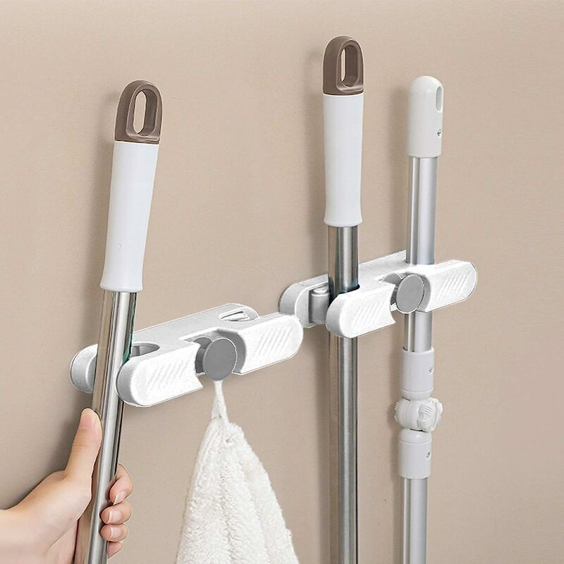 Design unico - Design senza trapano, utilizzare una colla adesiva resistente e antitraccia per l'installazione. Design a doppio slot per schede, utilizzo intelligente dello spazio. La parte della fibbia è protetta da un cuscino piatto in silicone per garantire tenuta e stabilità. La parte anteriore ha un gancio rotondo rimovibile per appendere spazzole, asciugamani e altri oggetti. 【Materiali di alta qualità】 Il porta scopa è realizzato in plastica ABS di alta qualità, ispessita, resistente alla corrosione e durevole. Bello e impermeabile, è molto adatto per ambienti umidi come i bagni. Gli angoli arrotondati sono privi di sbavature e hanno una buona consistenza. La colla antitraccia utilizza un super adesivo, che non è facile da staccare. 【Assolutamente stabile】 Il nostro supporto per mop utilizza adesivi forti, che possono sostenere fino a circa 3 kg e ha una forte stabilità, che è completamente sufficiente per riporre i tuoi strumenti quotidiani. Evita stracci e scope ammucchiati
