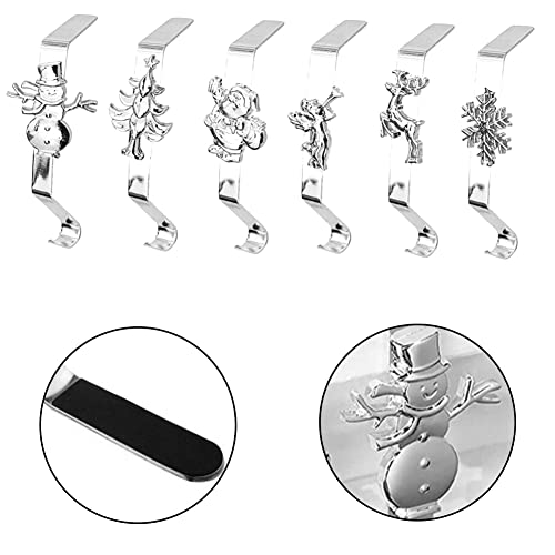 6 pezzi Portacalze di Natale,Gancio per mensola del camino,Supporti per Calza di Natale,Appendi Calze Camino,Ganci per fermagli per calze di Natale per la decorazione della festa di Natale (argento)