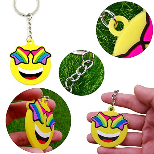 【Catena per Portachiavi】Ogni portachiavi ha un anello ben fatto per il fissaggio a chiavi o zaino. Questi portachiavi divertenti possono essere regalino di ringraziamento per bambini dopo festa di compleanno a tema emoji.