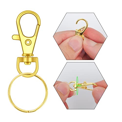 100 pezzi portachiavi a clip ganci a vite Lanyard moschettone con anelli portachiavi divisi, moschettone portachiavi (oro)