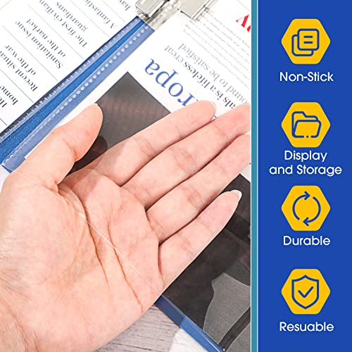 Dimensioni adatte: le dimensioni della buste perforate del display sono simili alla carta A4 di circa 310 x 240 mm/ 12,2 x 9,5 pollici e le tasche sono divise in 2 scomparti di circa 220 x 150 mm/ 8,7 x 5,9 pollici, le dimensioni corrette sono adatte per visualizzazione della maggior parte degli elementi
