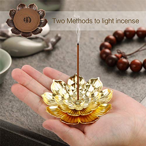 2 Pezzi Portaincenso di Loto Portaincenso Bastoncini di Loto Bruciatore di Incenso a Cono con Raccogli Cenere (Ottone Antico e Oro)