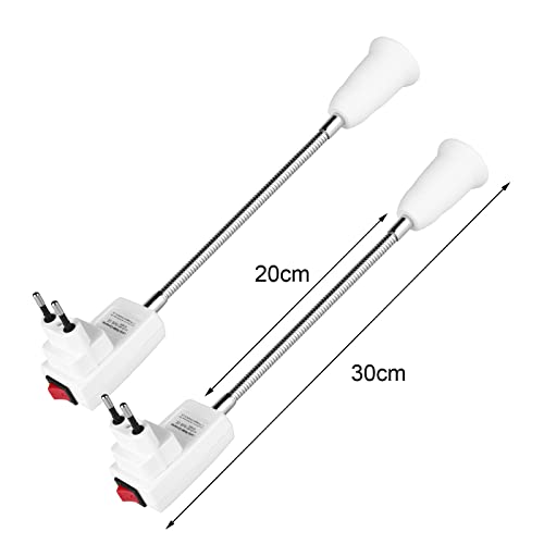 2 Pezzi Portalampada E27 con Interruttore e Spina EU, Convertitore Presa Portalampada 20cm Collo Flessibile, Girevole 360° Parete Convertitore di Lampadine E27 Presa di Luce Adattatore per Salotto