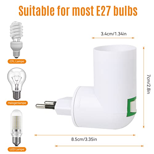8 Pezzi Portalampada E27 con Interruttore e Spina EU, senza Fili, Led, AC 230V, girevole a 180°, Porta Lampade E27 Adattatore Piccolo, Lampada da Parete, Lampada da Cucina, Soffitto Seminterrato...