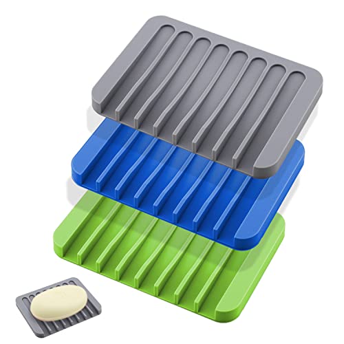 3 Pezzi Portasapone in Silicone, Porta Sapone Silicone, Portasapone con Scarico, Portasapone Portatile, Organizzatore Saponetta Contenitore, Porta Saponetta in Silicone per Cucina, Doccia Bagno