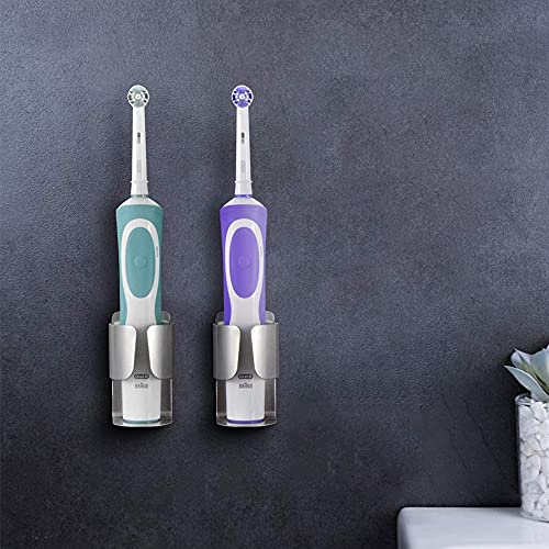 2 Pezzi Portaspazzolino Autoadesivo da Parete in Acciaio Inossidabile, Porta Spazzolini da Denti Elettrici Fissato al Muro, Portaspazzolino Elettrico, Supporto per Spazzolini Automatici
