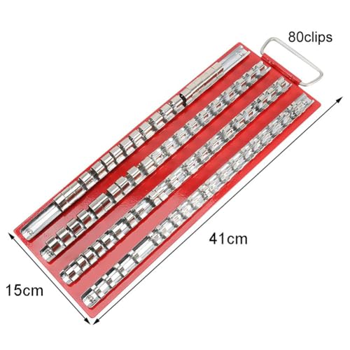 80 Pezzi Portatile Vassoio Organizzatore di Prese, Vassoi per Chiavi da 1/4" 3/8" 1/2" Rack di Supporto per Bussole per Impieghi Gravosi, per Garage Officina Parete Appeso (Rosso)