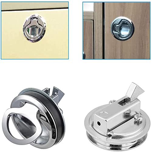 2 Pezzi Portello a Filo Barca, Flush Pull Hatch, Maniglia del Portello Della Barca, Serratura Rotonda in Lega di Zinco per Barche da Campeggio, Roulotte e Armadietti per Portelli da Incasso (Argento)