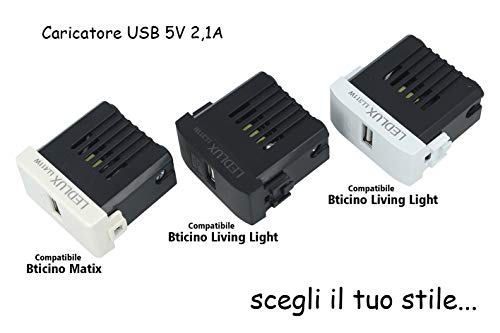 2 Pezzi Presa USB Da Muro, Caricatore USB 5V 2,1A, Compatibile Con Bticino Living Light (NERO)