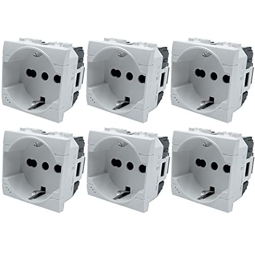 6 Pezzi Presa Schuko Universale 2P+T 16A Compatibile con BTicino Living - Bianco, ANMECS Facile Installazione (6)