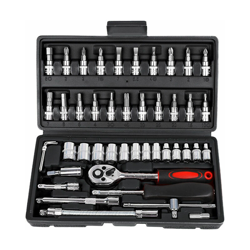 2.5 Kit completo di prese e accessori da 1/4: include la maggior parte delle prese metriche: 4, 4,5, 5, 5,5, 6, 7, 8, 9, 10, 11, 12, 13, 14 mm, prolunghe, giunti cardanici e cricchetto flessibile Per lavoro particolarmente preciso, i cricchetti reversibili hanno 72 denti Gli accessori possono essere cambiati molto rapidamente e facilmente utilizzando il pulsante sul retro Superficie cromata opaca Tutte le parti del set sono realizzate in acciaio al cromo vanadio di alta qualità, temprato e tenuto nella finitura cromata