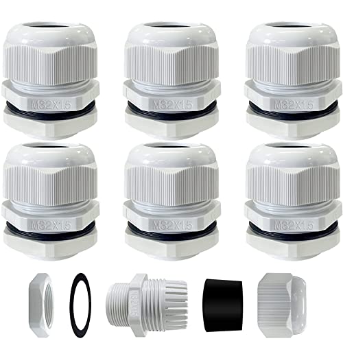 6 pezzi Pressacavi Impermeabili,Connettori Pressacavi, Nylon Pressacavi Connettori,Connettori per Cavi Impermeabili, M32x1.5(16-21mm) Regolabile IP68 Cable Ghiandole Bloccaggio(Nylon Bianco)