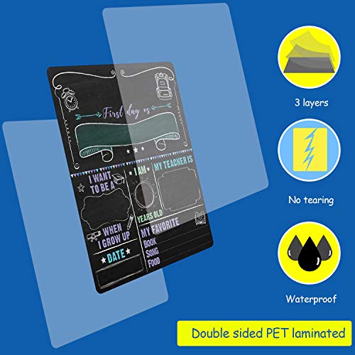 Cosa ottieni: il primo e l'ultimo giorno della lavagna scolastica include 2 diversi segni di lavagna con doppio lato stampato, utile per registrare le tracce della vita