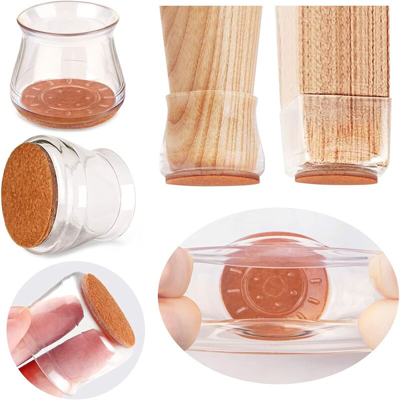 Mantieni belli i tuoi pavimenti: Non dovrai più lottare con sedie e gambe dei mobili che graffiano i tuoi pavimenti! le protezioni per il pavimento delle gambe della sedia si adattano alle gambe dei mobili per evitare graffi, proteggendo efficacemente i pavimenti in legno e le piastrelle! Riduci i costi di rifinitura dei tuoi pavimenti. Scivola senza rumore sulle superfici dure: Non c'è niente di peggio del suono della tua sedia che sfrega contro una superficie dura. Le nostre protezioni per le gambe dei mobili eliminano questo rumore riducendo l'attrito delle gambe dei mobili contro il pavimento! I cursori inferiori aiutano quei pezzi pesanti e ingombranti come i letti a scivolare sul pavimento duro senza sforzo! Vestibilità universale: I nostri cappucci per gambe in silicone sono altamente elastici e possono allungarsi per adattarsi a gambe di mobili di forme diverse, come piedini rotondi, quadrati e altri piedi irregolari. Sono stati realizzati per gambe di mobili di medie