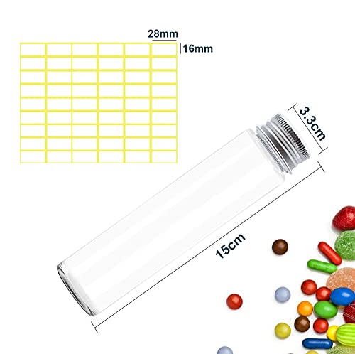 Set di 12 provette di grande capacità: Nel nostro set sono incluse 12 provette di plastica e 54 carta per etichette 16*28mm. L'altezza della provette di plastica è di 15 cm, il diametro è di 3,3 cm e la capacità del tubo è di 110 ml. Le nostre provette in plastica possono contenere molti piccoli oggetti inclusi liquidi, polveri e solidi.