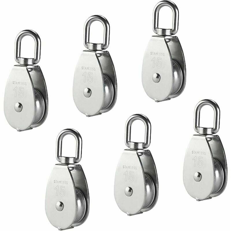 Carico massimo: 35 kg / 77 libbre. Che rullo semplice ma potente. 【Ampie applicazioni】 Puleggia scorrevole flessibile con elevata capacità di carico per molte applicazioni. Uso di gravità e scorrimento per lavori di sollevamento, trasmissione o trazione, progettato per essere utilizzato con una corda o un cavo all'interno e all'esterno con una funzione di scorrimento regolare. > Descrizione del prodotto: Colore: 6 pezzi Piccola puleggia flessibile di sollevamento e scorrimento con grande capacità di carico, offre la massima comodità