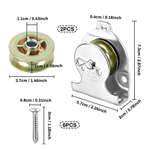 5. 【Informazioni sulla confezione】: la confezione include 2 pulegge singole e 6 viti. La lunghezza della puleggia è di 7,3 cm, la larghezza è di 5,7 cm.