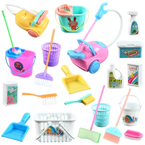 【kit Pulizia Bambini Giocattolo】Riceverai 22 Giocattoli per Pulire con colori casuali,Compresi mini aspirapolvere di plastica,scope,cestino,Mops,Spazzoli,asciugare i secchi,mini agente di pulizia in plastica,Pala,Rivegno al vetro ecc.;