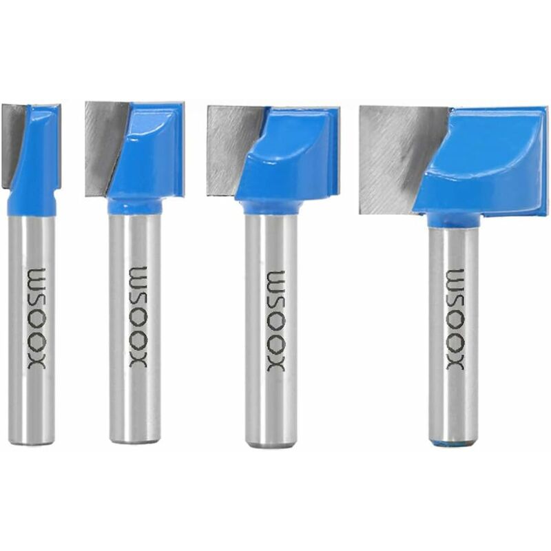 MDF, legno massiccio, truciolare, compensato, telai di porte in legno, telai di finestre in legno, armadi e scatole, ecc. 【Fornitura】 Set di 4 punte per la pulizia della fresa da 8 mm. Set di punte di pulizia 8 mm Caratteristiche: Colore: blu, tono argento. Materiale: lega di carburo. Tipo di stelo: stelo rotondo. Diametro stoppino: manico da 8 mm. Diametro taglierina: 10/15/22/30 mm. Caratteristiche: 1. Utilizzato principalmente per tagliare e levigare una varietà di materiali da legno, compensato, MDF e altri compositi di legno, plastica, fibra di vetro, superficie solida, ecc. 2. Utilizzare con macchine