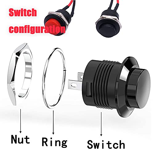 24 pezzi di pulsante AC 250 V 3 A/125 V 6 A manopola per clacson rotondo momentaneo, 20 mm, interruttore push Button per auto, barca, fai da te, con scatola (rosso/nero)