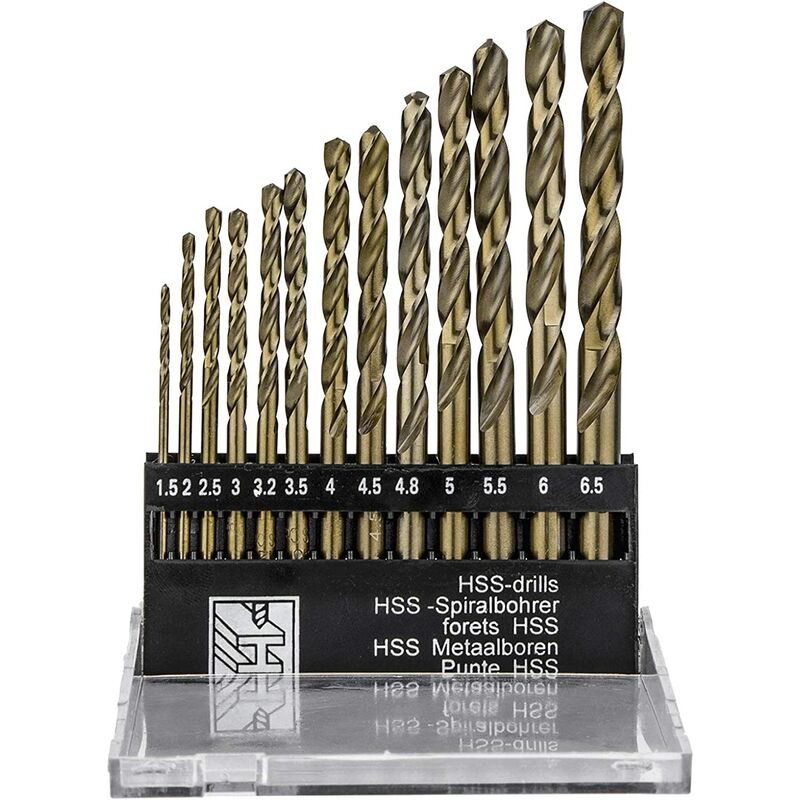 Non cammina o vaga - Le punte Quick-Cut a 135° sono autocentranti e penetrano rapidamente con meno pressione Metallo - Per forare acciaio, alluminio acciaio inossidabile, metallo duro e ferro da stiro. Più facile da tagliare il metallo duro come l'acciaio inossidabile e la ghisa, può essere utilizzato anche per materiali più morbidi Resistente al calore: funziona a 1500 giri/min o più per la massima efficienza. Il gambo dritto offre una presa più salda e un centraggio preciso. Per mandrini standard e normali mandrini a pinza rotondi Facile da usare e da riporre - 13 pezzi di punte elicoidali in acciaio al cobalto M35: 1,5 mm, 2 mm, 2,5 mm, 3 mm, 3, 2 mm, 3,5 mm, 4 mm, 4,5 mm, 4,8 mm, 5 mm, 5,5 mm, 6 mm, 6,5 mm, 13 pezzi Confezionato in una custodia di plastica per un utilizzo e una conservazione più facili Fino a 12 volte: acciaio al cobalto M35, molibdeno e cobalto vengono aggiunti a creare una lega temprata, misurando la durezza Rockwell fino a 67, per un taglio più rapido e una