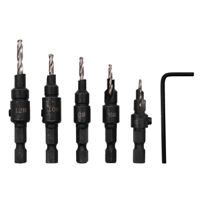 Varie dimensioni: il set di punte da trapano costruite in HSS include 5 punte elicoidali in 5 diverse dimensioni, n. 5 n. 6 n. 8 n. 10 n. 12 e 1 chiave esagonale. Con i numeri sulle punte per un facile riconoscimento, puoi soddisfare le tue diverse esigenze. Materiale di qualità: ogni fresa è realizzata in acciaio trattato termicamente per prestazioni durature e ripetibili con HSS (acciaio ad alta velocità) facilmente sostituibile, con diametro della testa n. eliminare vibrazioni, vibrazioni per un funzionamento regolare e per eseguire tagli netti, precisi e senza sbavature. Facile da usare: profondità del contromanico regolabile con chiave esagonale, la lunghezza della punta può essere regolata per viti di diverse lunghezze semplicemente allentando e serrando la vite di fermo. Ampie applicazioni: il set di punte per controtrapano fornisce un taglio netto e veloce attraverso le assi di legno, il p plastica, metalli teneri, compensato, alluminio, pannelli di particelle e altro ancora.