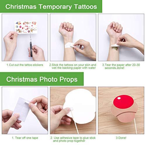 32 Pezzi Puntelli Photo Booth di Natale, Puntelli Photobooth Feste di Natale con Tatuaggi Temporanei per Foto di Famiglia e Forniture per Feste di Natale