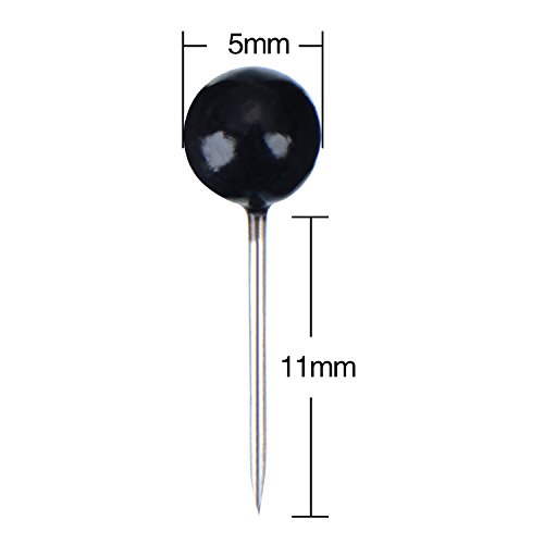 300 Pezzi Puntine da Disegno Chiodini da Mappa Tondo Testa di Plastica, 1/ 5 Pollici Testa, Nero