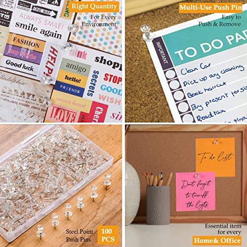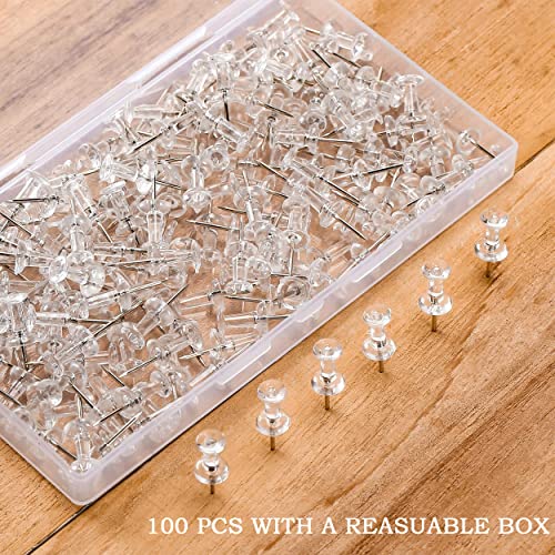 100 Pezzi Puntine da Disegno Trasparenti, Puntine per Lavagna Sughero, Puntine Chiodini di Mappa, per Bacheca, Ufficio, Lavagne