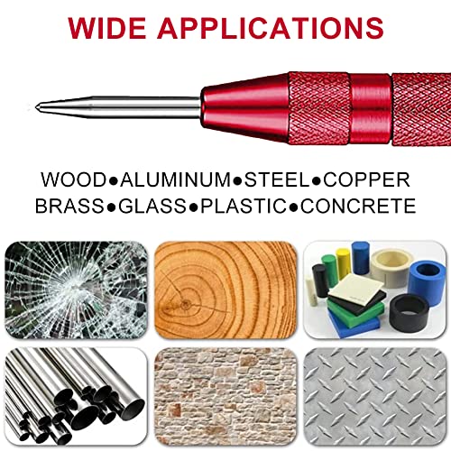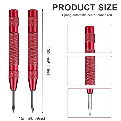 2 Pezzi Punzone Center Automatico,multicolore Punzone a Centro Acciaio legato 5,2 pollici Punzoni per Metallo con Corsa Regolabile con Corsa Regolabile Per Legno, Metallo, Plastica (rosso)