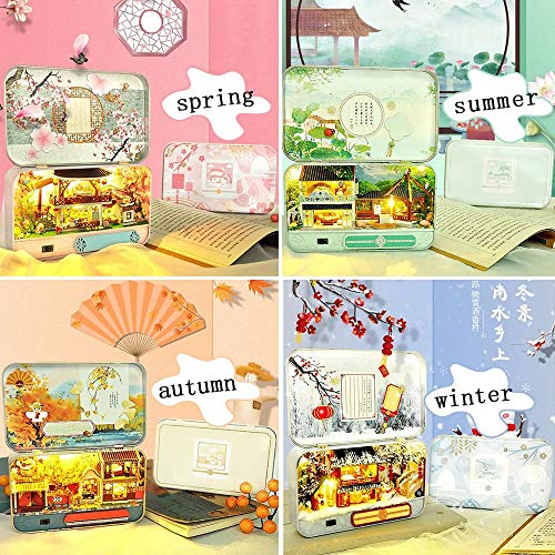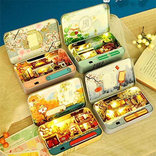4 Pezzi Quattro Stagioni Casa delle Bambole in Miniatura Scatola di Latta per mobili in Legno Micro Paesaggio assemblare Giocattoli per Bambini Regalo di Compleanno