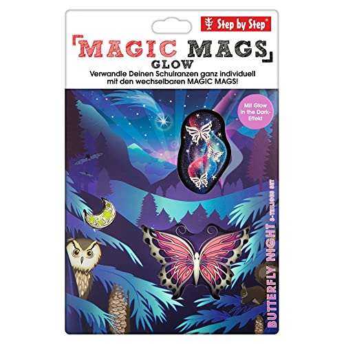 Con questo articolo Step by Step, tuo figlio può personalizzare la zaino della scuola di Step by Step . I Magic Mags sono attaccati alle superfici magnetiche e ai loop di fissaggio. Questi sono disponibili in diversi motivi - qui il motivo Butterfly Night. Dimensioni: 8 x 8 cm