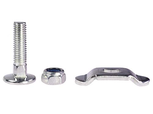 10 pezzi 25 mm di lunghezza utile della filettatura. Filettatura M8 con dado autobloccante. Impedisce l'allentamento della vite. Carico di rottura: 800 kg. Bulloni in acciaio G 8.8 / piastrine e dado G 4.8