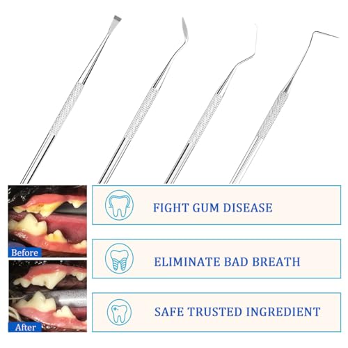 【Design portatile】: Set di 4 detergenti per tartaro in acciaio inossidabile, sufficienti per soddisfare le esigenze di igiene orale degli animali domestici. Di piccole dimensioni, leggero, non occupa spazio, molto adatto per uso personale, negozio di animali o veterinario professionista.