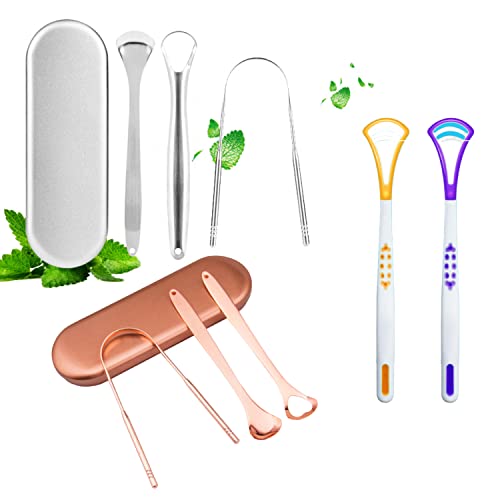 【Facile da usare】 - Il guscio di alta qualità contiene 3 tipi di raschietti per lingua, che possono soddisfare tutte le tue esigenze di igiene orale. Usando il design del raschietto per lingua umanizzato, otterrai un'esperienza di pulizia sicura. La giusta dimensione non danneggerà la tua lingua ed è facile da usare.