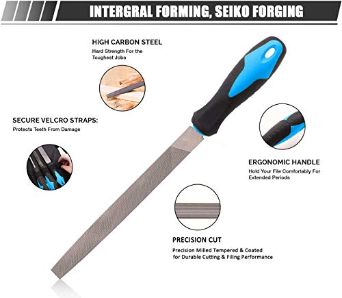 【Materiali e design di alta qualità】 - Queste lime in metallo sono realizzate in acciaio al carbonio, robuste e durevoli. Le impugnature ergonomiche softgrip in gomma si adattano saldamente alla lama della lima e si tengono comodamente in mano, risparmiando manodopera e sicure. Suggerimenti: L'olio antiruggine utilizzato nel set può avere un odore speciale, questo non è un difetto. L'odore scompare dopo un po '.