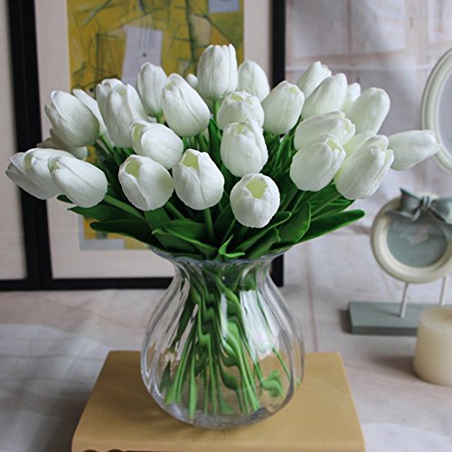 10 pezzi reale tocco PU lattice artificiale del tulipano Fiori per Wedding Bouquet di fiori finti e Decorazione per la Casa Garden Decor, simulazione reale di tocco del tulipano colorato per il regalo di compleanno di Natale San Valentino(Bianca)