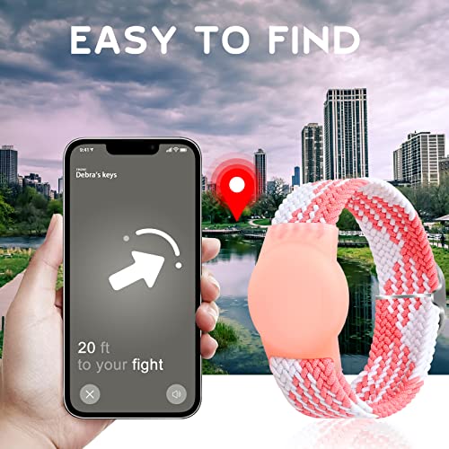 4 Pezzi Regolabile Cinturini per Orologi in Silicone Morbido AirTag, Anti-Graffio Nylon Braccialetto con Airtag Custodia, Anti Smarrimento Braccialetto per AirTag per Anziani, Bambini