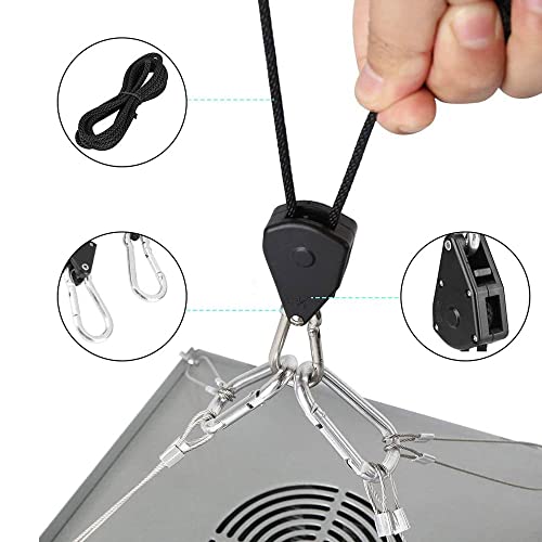 Ampia Gamma di Applicazioni: Ganci nylon corde ampiamente utilizzati nelle luci per piante a led, ventilatori per ambienti, luci per piante, piante in vaso, lampade, sistemi di ventilazione, filtri a carbone o riflettori. La fune a cricchetto della puleggia fornis.