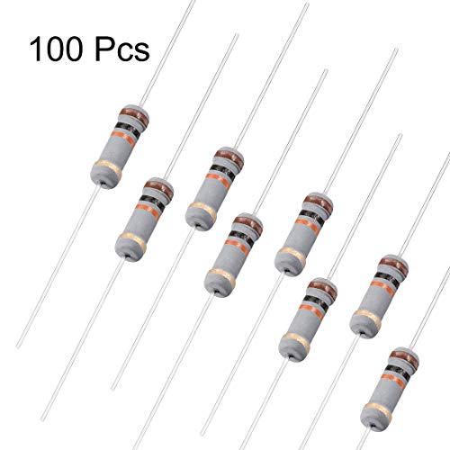 100 pezzi 10 K Ohm Resistor, 1 W 5% Tolerance Carbon Film Resistors, Axial Lead, 4 bande per fai da te elettronici Projects ed esperimenti.
