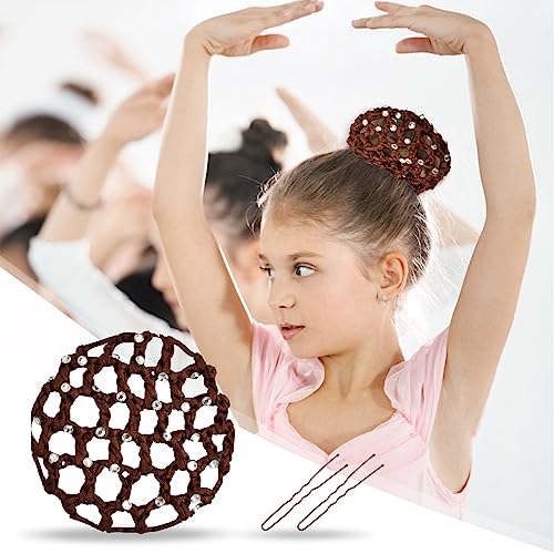 2 Pezzi Retina per Capelli Chignon con Strass, Retine Invisibile per Capelli Chignon con 10 Forcine a Forma di U,Decorazioni dei Capelli per Ballerina Ginnastica Infermiere Personale di Banca(Marrone)