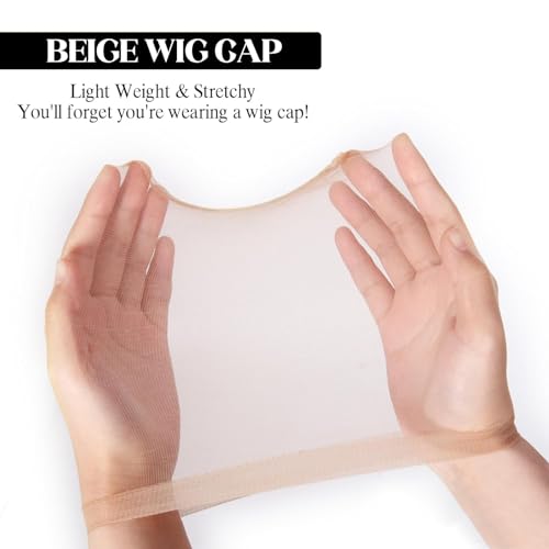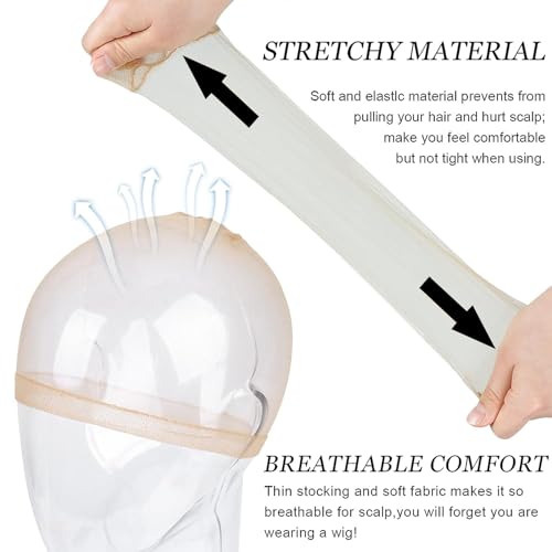 ✔【Design Antiscivolo】Parrucca tappi dotato di elastici sciolti con bordi che non si arrotolano facilmente, garantendo una vestibilità comoda e rimanendo saldamente in posizione tutto il giorno, la fascia elastica spessa e larga non solo impedisce al cappuccio della parrucca e alla parrucca di scivolare via, ma protegge anche la pelle dagli effetti pruriginosi del pizzo anteriore