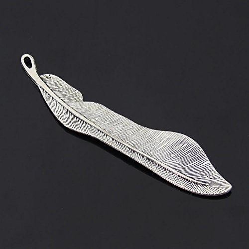 10 pezzi Retro Vintage Classico Delicatezza Forma di Piuma Metallo Bordare Segnalibro Decorato con Nappe fatte a Mano in Seta (Argento antico)