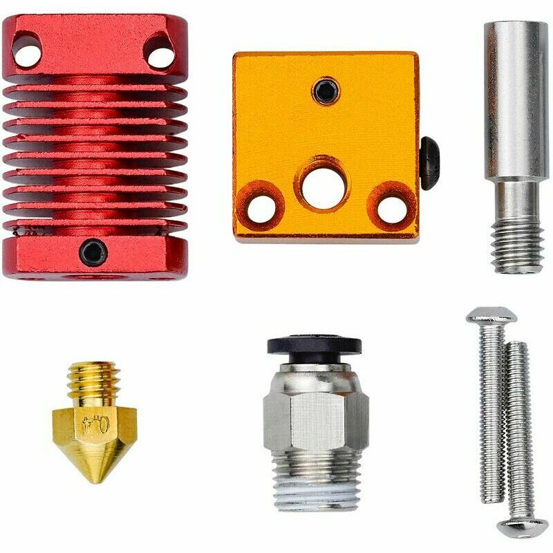 Specifica: Blocco riscaldatore in alluminio Raccordi pneumatici Materiale: acciaio inossidabile Tipo di installazione: connessione filettata esterna < br/>Ugello Dimensioni: 0,4 mm Lavello: 28 mm Blocco riscaldatore: 20 x 20 x 10 mm Riscaldamento del tubo: 24 V 40 W Intervallo di temperatura di funzionamento: -40~+260°C (-40~+500°F) Peso: 45g < br/>Compatibile - Accessori perfetti per Creality Ender 3, Stampante 3D Alfawise U20, U30, CR10, CR10S, CR10 S5, CR10-MINI, CR10 S4. Kit estrusore hotend - Il filo bianco era un termistore, il filo rosso è un tubo di riscaldamento da 24 V 40 W. Materiale: blocco riscaldante in alluminio, resistente al calore. Raccordi pneumatici in acciaio inossidabile, robusti e durevoli. Ugello in ottone, resistente all'usura. Incluso: 1 dissipatore di calore, 1 blocco riscaldatore, 1 ugello da 0,4 mm, 1 raccordo aria diritto, 1 ugello a collo, 2 viti. Vantaggio - L'ugello del collo di questo hot end non è rivestito di PTFE. Questo è utile per evitare