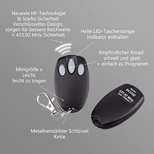 Supporta 3 porte del garage + indicatore luminoso LED verde: questi telecomandi possono controllare fino a tre apriporta del garage + tecnologia rolling code per proteggere l'accesso e la connessione della casa.