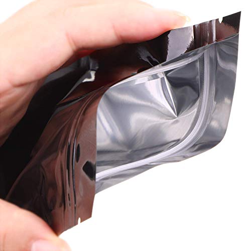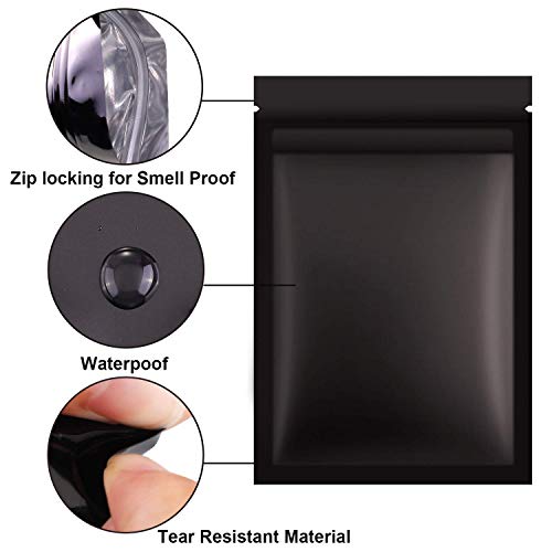 100 Pezzi Richiudibile Sacchetti a Prova di Odore Sacchetto di Stagnola Borsa Piatta a Chiusura Lampo per Vita Quotidiana o Articoli per Feste, Nero (3 x 4 Pollici)