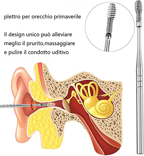【Stile inossidabile ergonomicamente affilato】 6 detergenti per curette auricolari di diverse dimensioni per pulire il cerume sia morbido che duro in modo efficiente e confortevole per evitare graffi alle orecchie delicate, non danneggiare il condotto uditivo durante la pulizia efficace. Elevata sicurezza per adulti o bambini.Una piccola spazzola inclusa per pulire gli auricolari dopo l'uso.