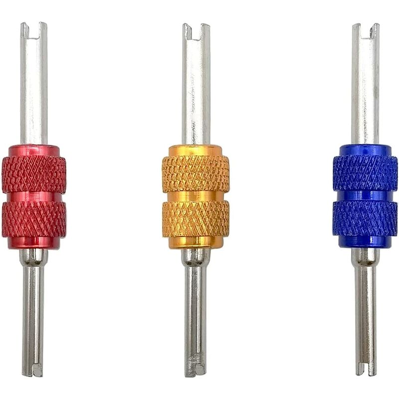 Uso generico: teste singole e doppie, teste di diverse dimensioni possono essere adattate a diverse esigenze. Piccolo e conveniente: facile da trasportare e da usare. Puoi metterlo nella cassetta degli attrezzi dell'auto. Lo strumento perfetto per la riparazione di biciclette quando si viaggia in bicicletta. Molteplici applicazioni: adatto per motociclette, camion, trattori, jeep, automobili e vari tipi di condizionatori d'aria. Materiale: realizzato in resistente lega di alluminio, di lunga durata. Design compatto e conciso, facile da trasportare e utilizzare. Facile da usare: lo strumento per la valvola del pneumatico a doppia testa può sostituire rapidamente il nucleo. Inserisci lo stelo della valvola, rimuovi e installa facilmente il nucleo della valvola. Dimensioni del prodotto: 7,5 cm x 1,38 cm Colore: oro, rosso, blu Quantità di spedizione: 3 pezzi